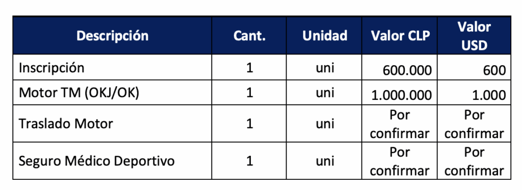El valor del arriendo del motor para las categorías OKJ y OK incluye los cuatro días de duración del evento.