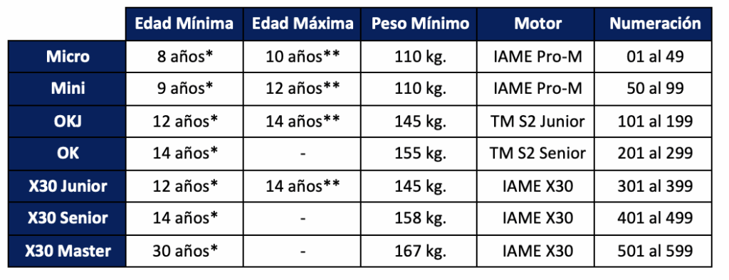 En las categorías Mini y X30 Master, no existe un límite de inscritos por país. Los motores en estas categorías son propiedad del piloto o del equipo y deben ser de procedencia sudamericana.